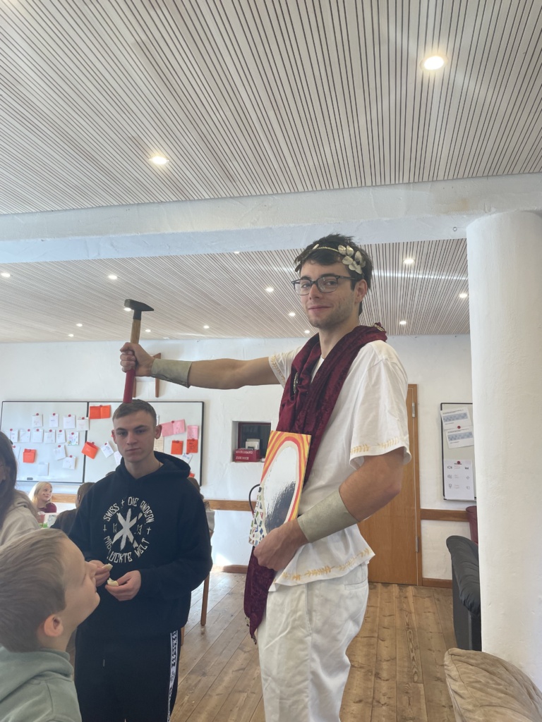 Den Vormittag verbrachten die Kids mit dem Gestalten eines Mosaikspiegels unter der Anleitung der lebendig gewordenen Statue Silas, dem Baumeister von Korinth.