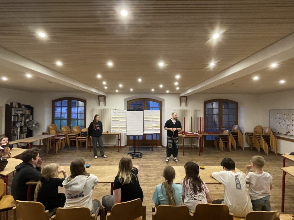 Am Nachmittag wurde es knifflig für die Kinder – sie hatten die Aufgabe durch spielerische Begleitung die Gruppengemeinschaft zu stärken, indem sie durch Kommunikation, Kompromisse und Diskussion auf eine gemeinsame – alle zufriedenstellende – Problemlösung kommen sollten, welche wirklich erstaunlich schnell gefunden wurde.